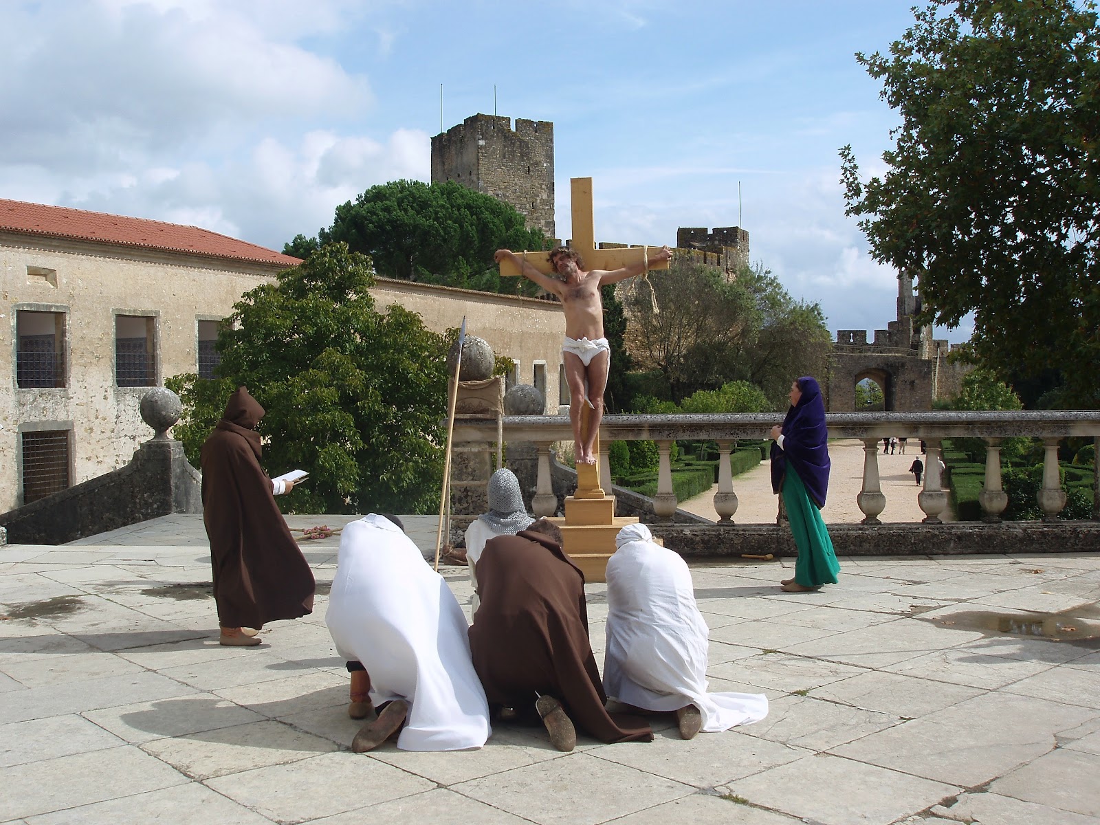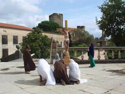 Cenográficamente naturalista- já que é o proprio monumento real que nos envolve... com suas muralhas, portas, arcos, frestas, capiteis, abóbada, escadas,arvore ,tanque... em sua função original... mas que não só os mostra, também os anima- dando-lhe vida, alma- expôe emoções/vibrações de época...uma autêntica atmosfera do lugar, tanto no espiritual como no temporal , acercando-nos da vida do sec XIII.